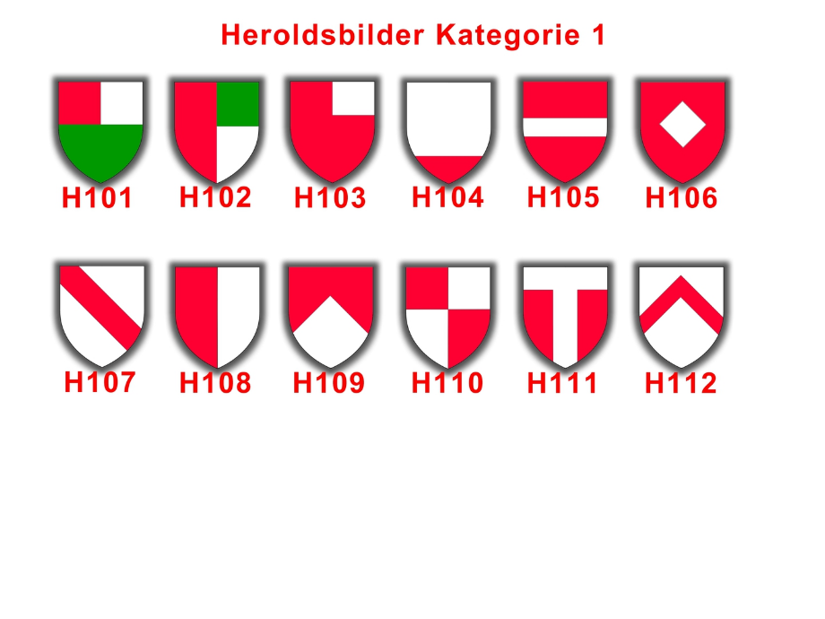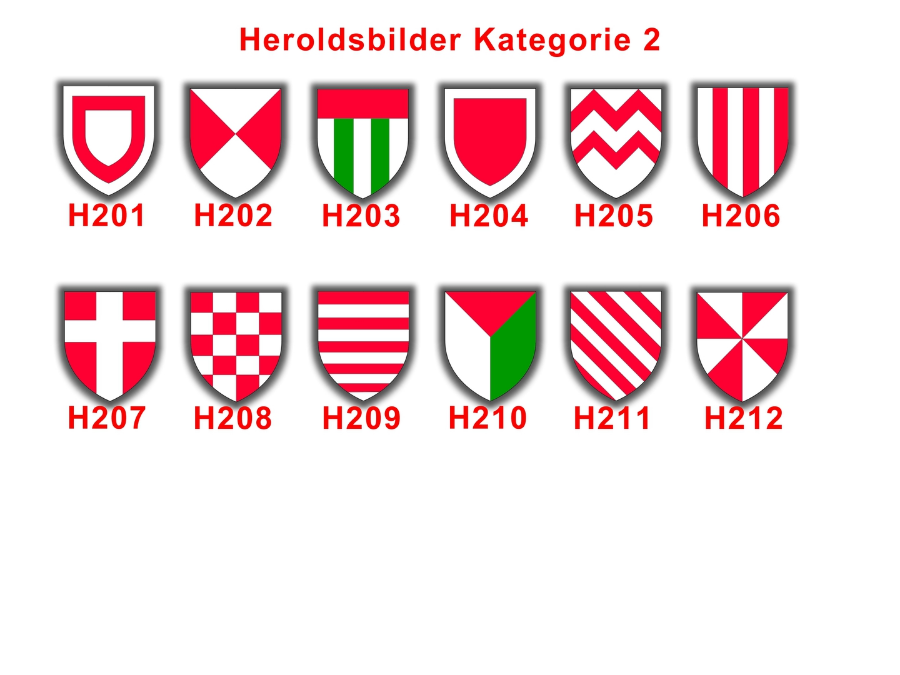 Dazu einfach bei der Bestellung die Nummer unter dem jeweiligen Heroldsbild angeben sowie die Farbkombination.