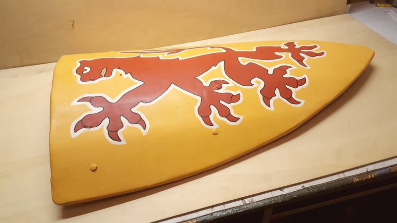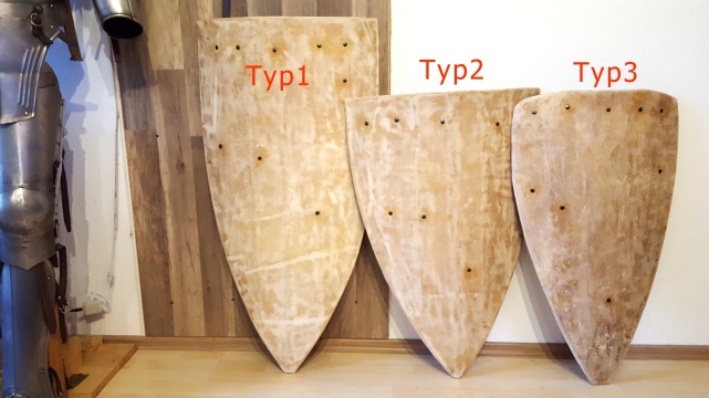 Die Bauweise der Schilde entspricht zu großen Teilen den originalen Methoden des mittelalterlichen Schildbaues. Hierfür wird Lindenholz wie bei den Originalen verwendet.